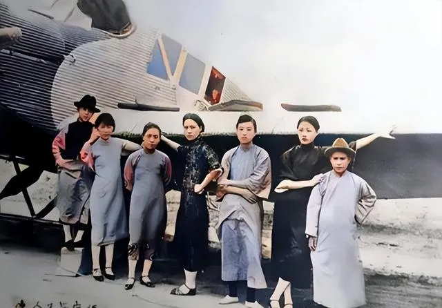 机翼边排开一溜人,长衫配黑布鞋,袖口挽到手肘,最小的那个把帽子往上一挑,脸蛋还带着婴儿肥,发动机舱门半开,像一只大鸟歇在地上,大家围着它合影留念,心里都打着算盘,明天会不会飞得更远。
