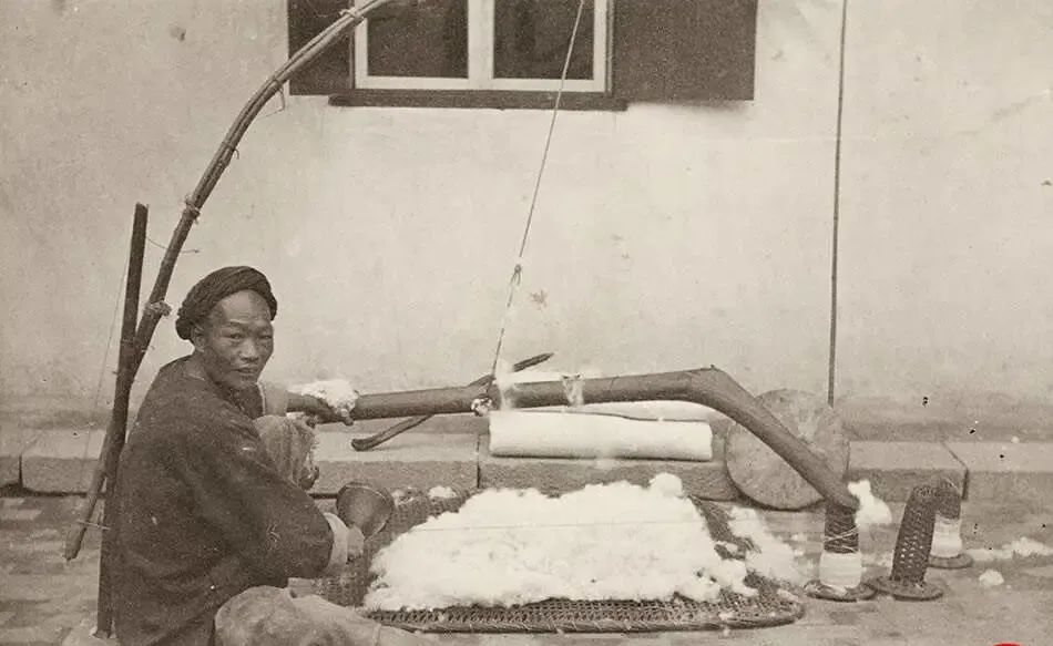 这个长弯家伙叫棉弓,弓弦是牛筋,师傅左手握弓把,右手举木棰,噔噔噔敲弦,棉团被震得“噗”地炸开,像小白云飞起来,弦震到高处,细棉絮落在席面,慢慢堆成一层软雪,小时候躲在门口看热闹,最怕那声脆响,又偏偏等着它响,弹好的棉胎卷得齐齐的,冬天钻进新被窝,脚背一伸,暖气就从膝盖往心口冒。