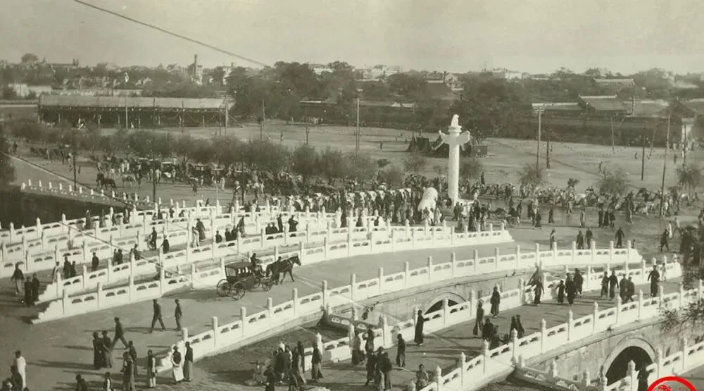 这弯弯绕绕的白石栏板就是外金水桥,桥上人影攒动,轿车慢吞吞挪过来,马车从侧边掠过去,远处立着华表,风吹得旗绳抖,听说那会儿外廷隔三岔五搞活动,百姓挤着看新鲜,热闹是真热闹,规矩却乱糟糟的。