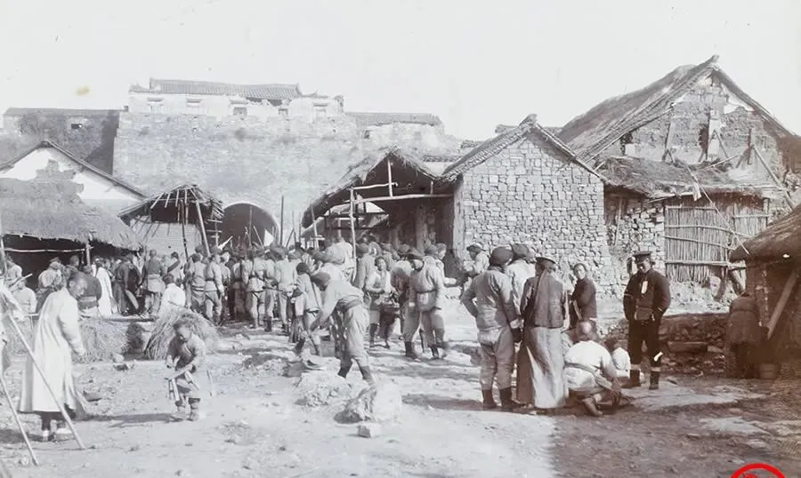 。这个巷口乱糟糟,石头垒的墙,草顶房子掉着檩条,兵丁成排朝城门挤,人群背着草捆炊具往外撤,孩子提着小板凳一路小跑,老匠人还在给屋檐绑草,手里麻绳拽得紧,那时候打完仗先修门,没门就没买卖,没买卖就没饭碗。