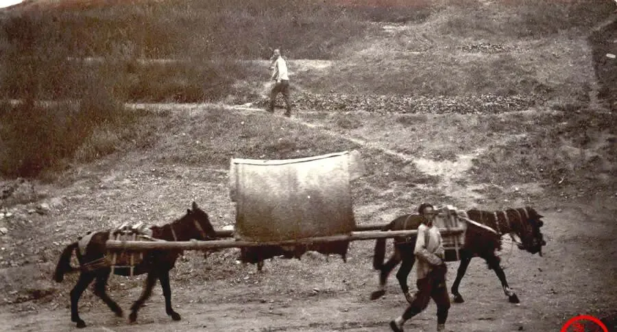 。这个滚圆的大铁桶叫驮水桶,两头用木架卡住,中间一个粗轴,骡子一前一后,赶车人拿鞭儿不真抽,就打个响,坑洼路上桶壁当当作响,回到村口先往缸里灌,水冒白泡,那会儿水比油金贵,谁家要是能接上一瓢热水,都得谢谢半天。