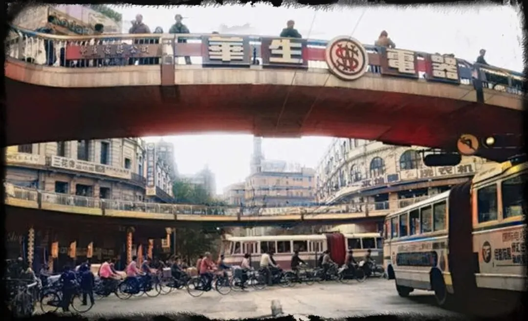 天桥上华生电器的广告牌非常醒目。家里的华生电风扇用到淘汰,也没坏。