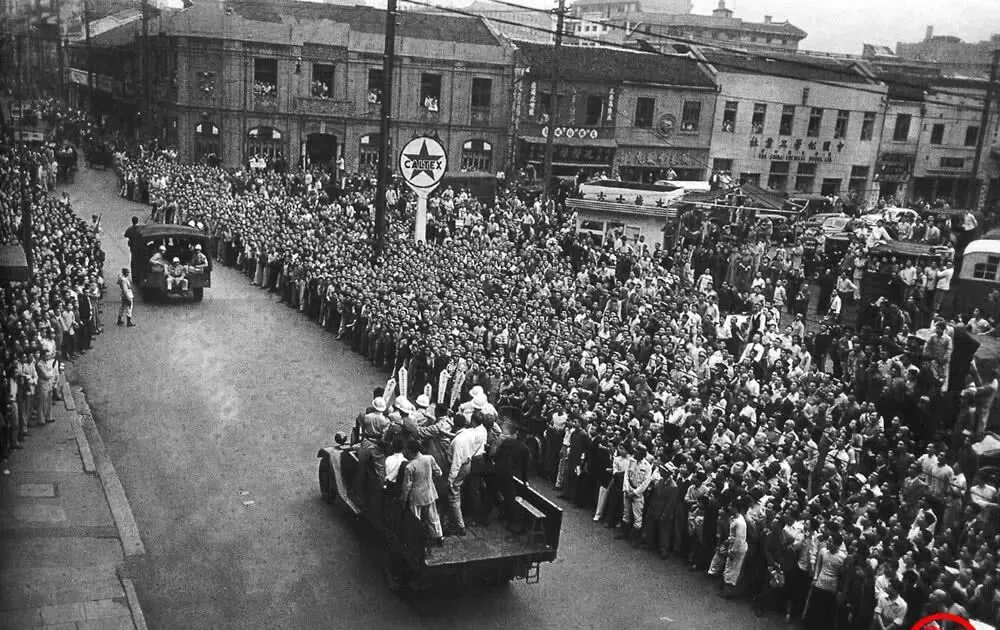 一口气翻完这组黑白照片时我愣住了,街口人山人海的喧哗像从纸面里涌出来,刀笔写不出的紧绷与荒诞,全让镜头给按下了快门,那时候的上海风声鹤唳,警车的汽笛声像撕裂布匹,人们挤在路边看热闹也看命运,今天就按老照片里出现的场景,一样一样捋捋当年的物件与瞬间,认得几样不重要,记住那股凉意更要紧。