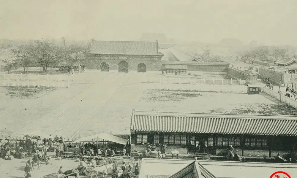 这个三孔拱门的地方叫前门东站,门楣上挂着牌,门前是笔直的轨枕道,院墙刷得干净,栅栏留着西式味儿,门外的车夫把毡帽一扶,问客人是去肉市口还是鲜鱼口,一趟饭碗全靠勤快,天亮接天黑。