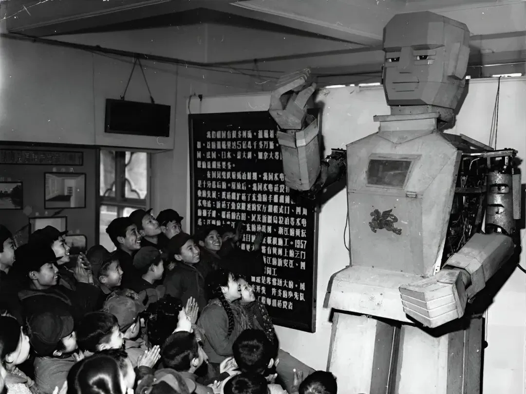 这个铁疙瘩叫机器人,脑门方方的,胳膊一抬一落,胸口还嵌着个小窗,孩子们仰着脖子看得直乐,老师在旁边说别挤别挤,我只记得那手掌“咔哒咔哒”地响,像会说话似的。
