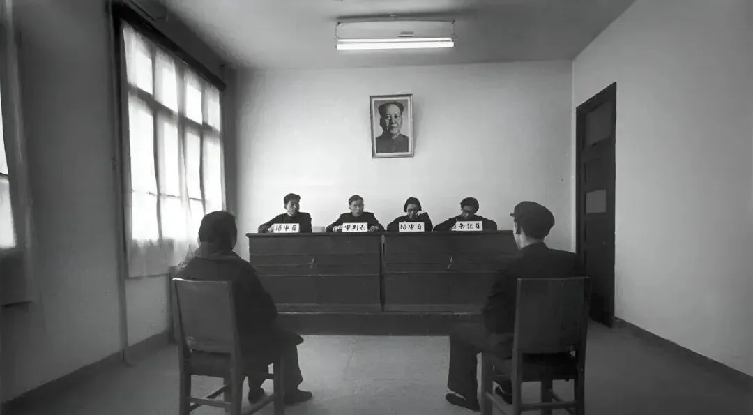 这房间里摆的叫简易法庭,桌上立着名牌,窗纱被风吹得鼓起又塌下,墙上挂着像,夫妻俩一人一把椅子坐两边,静得只听见纸张摩擦的沙沙声。