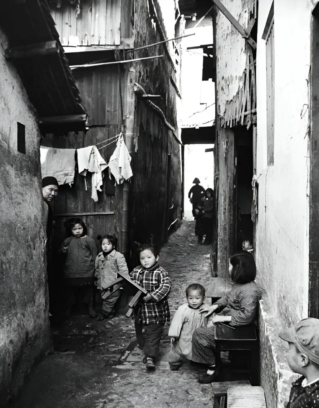 这条窄胡同一眼能望到头,小凳子靠在墙边,晾衣绳从窗洞里穿过去,孩子们手里攥着木板和跳绳,谁家喊一声开饭了,散得比猫还快。