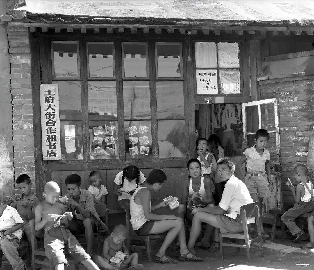 这块牌子写着合作租书店,孩子们小板凳一坐就是一下午,手里翻的是连环画,**《白蛇传》《三国》**来回换,老板在屋里喊一声还书时间到,大家悻悻把书合上,嘴里还嘟囔着下回接着看。