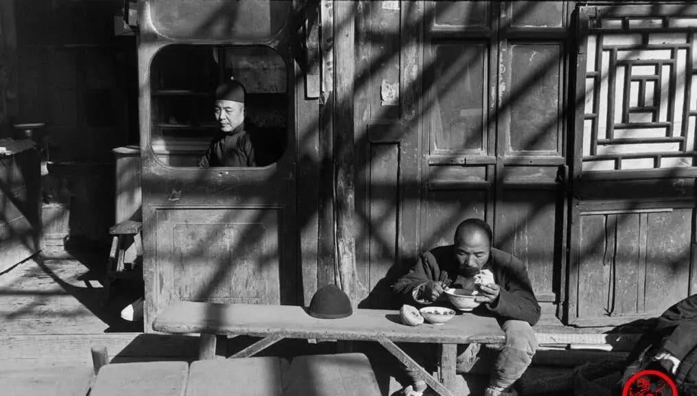 这个门口一溜的长条桌叫条桌板凳,桌面坑坑洼洼,热碗一放就冒白气,伙计脑后别着筷子,客人一手抓白面烧饼一手端菜汤,窗格子里的影子像棋盘格,谁都不急,慢慢嚼慢慢咽,日子虽苦,牙口还硬。