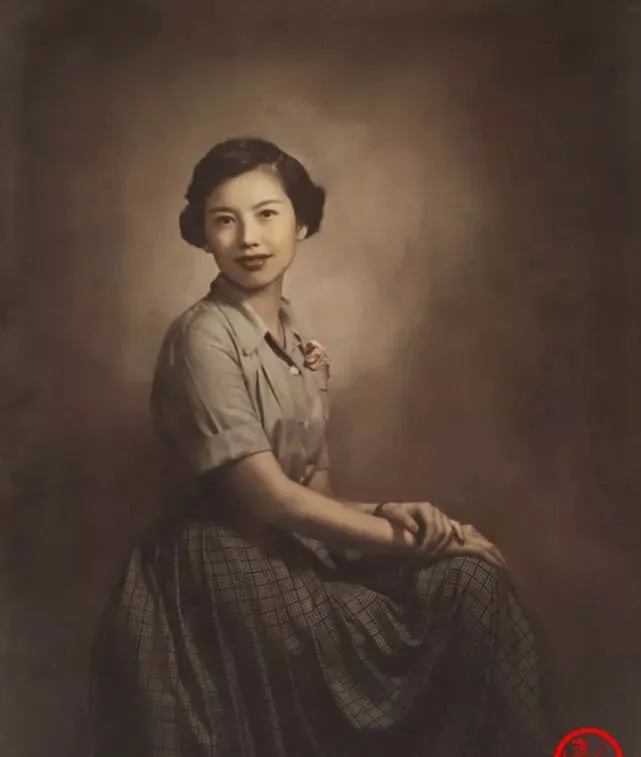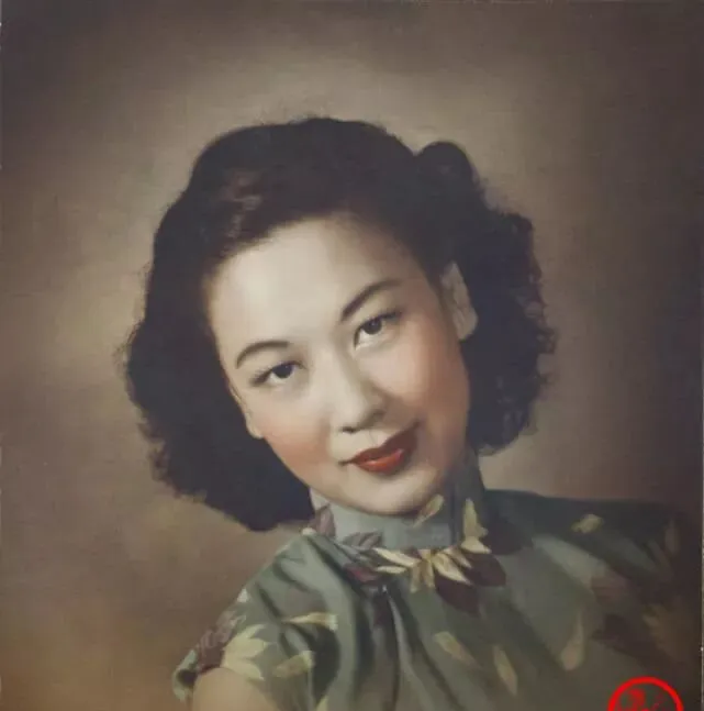图中这身浅绿底叶纹的旗袍叫印花薄绸旗袍,领口压着细细盘扣,腋下省道收得紧,镜头把她的笑意推近了一点,唇色像石榴籽一样温热,她往前轻轻探着头,像要把一句悄悄话送出来,我外婆说当年拍照前要先去油头店做浪头,再去照相馆扑粉,摄影师最后还要手工调色,指尖一点一点把脸颊点出血色呢。