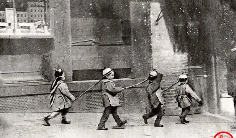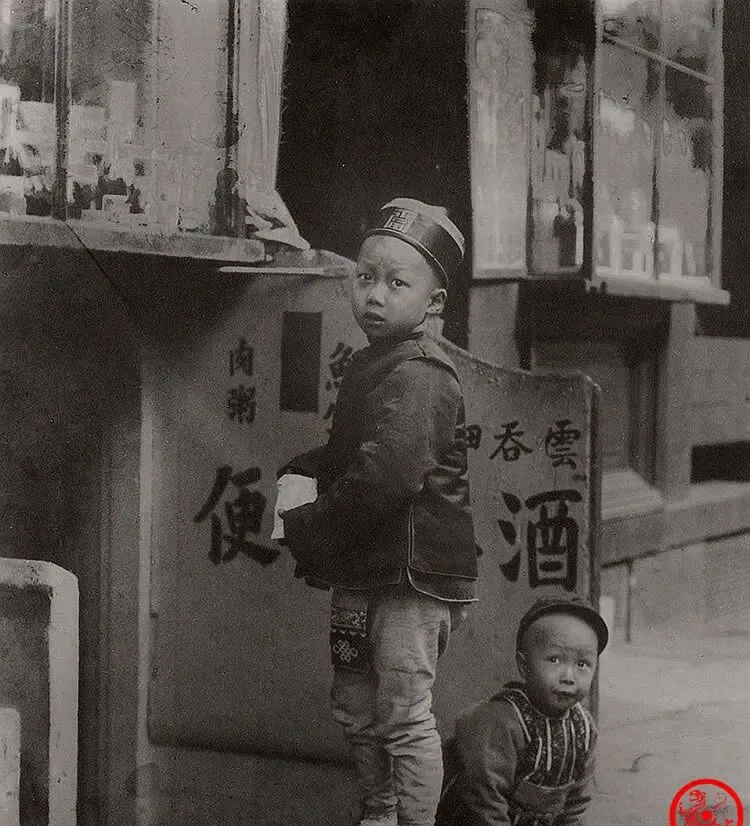 这几位小家伙把辫梢揪到脑后当绳子系,手里举一根细细的棍,前头一个喊着号子追着光点跑,脚上布鞋踩在石缝里啪啪作响,那时候的玩意儿简单得很,一根绳一根棍子就能疯半天,现在孩子在商场里挑半天也不一定笑成这样,爷爷说辫子是旧朝规矩,到了洋地方也不敢轻易剪,剪了怕同乡骂不孝,留着又被人笑落伍,夹在缝里过日子最难。