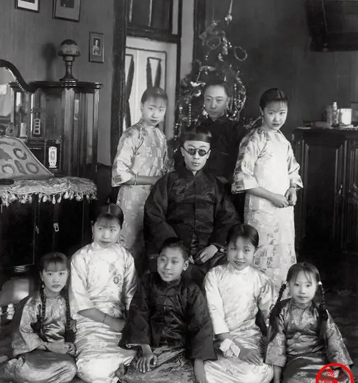 这张屋里灯影暖,靠墙摆着洋钟,架上又挂起亮闪闪的装饰,像过节一样,溥仪坐在中央戴着墨镜,周围一圈妹妹挨挨挤挤,袖口绣线在灯下发亮,谁的手搭在谁的肩,都不拘谨,家里人说,小孩儿只要能笑着围过来,日子就没差到哪儿去,以前在宫里规矩多,现在住进洋房,桌上多了糕点,耳边多了笑声。