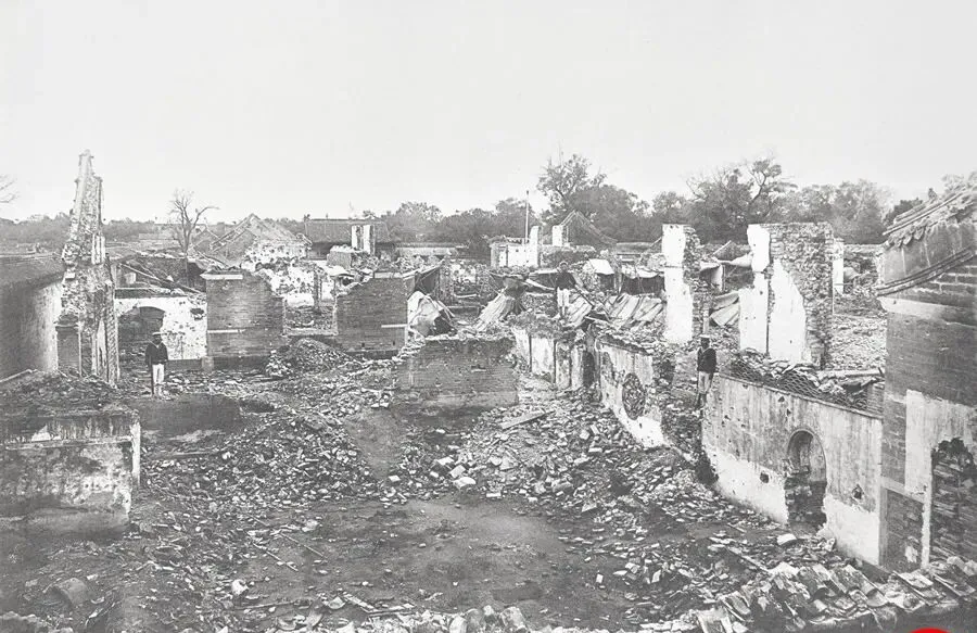 清末老照片:富丽堂皇的肃亲王府被炸成废墟,现场凌乱不堪.