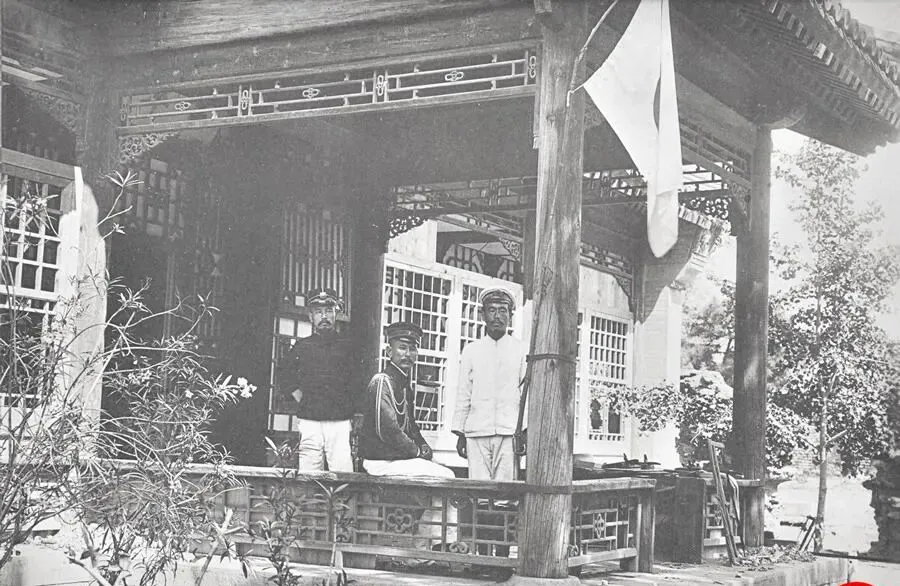这群拿着步枪的,是在府里合影的外兵队伍,前排压着旗子,后头是被打烂的石阶和断柱,神情各异,更多的是张扬和疲惫并在一脸上,我看这张总会想起一句老话,枪口到哪儿,命运就被拽到哪儿,以前礼王府的房、豫王府的墙、肃王府的银子用斗量,现在呢,连一块整砖都难挑。
