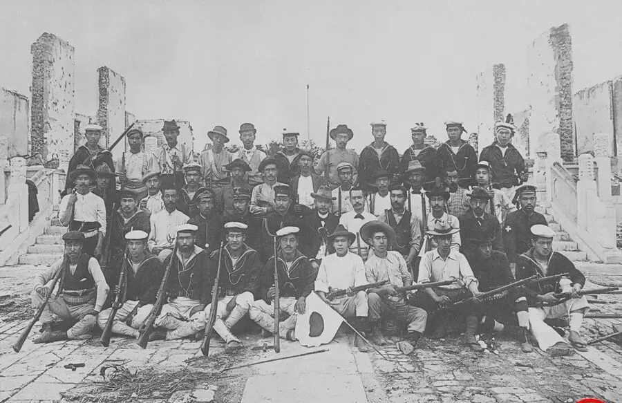 清末老照片:富丽堂皇的肃亲王府被炸成废墟,现场凌乱不堪。