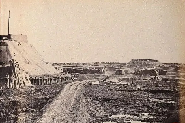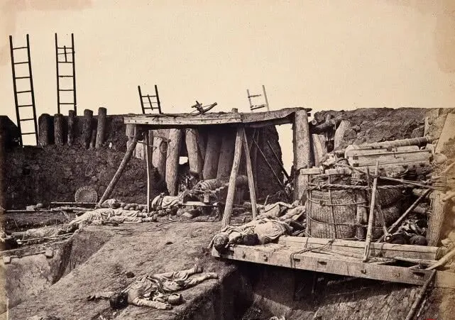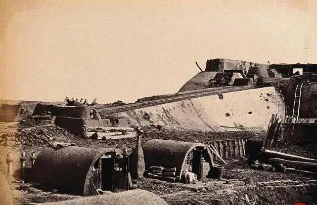 老照片:清军战败后的大沽炮台,直隶提督战死。
