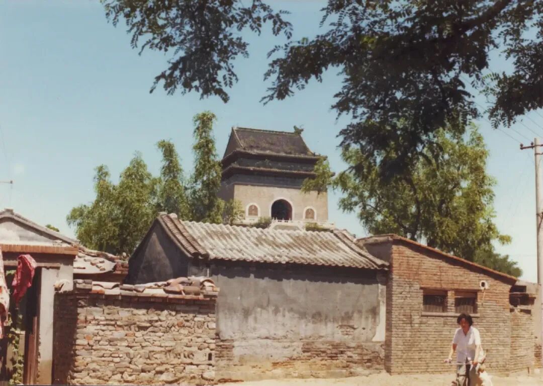1980年,北京的一条老胡同。一位骑自行车的女子,正从这儿经过。边上那栋高高的古建筑是北京钟楼,要不是这栋建筑入境,还真不好辨认这张照片的位置。