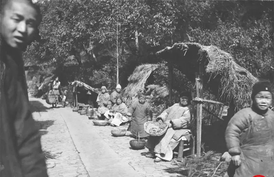 这批黑白老照片是百年前的街头切片,冷不丁把人拖回尘土飞扬的年代里,城门外有讨口的,城门里有做买卖的,树林下有人支茶炉,山道旁有人抱着花枝留影,同一段光阴里的人生各自张望,看得人心里一沉一暖交织着。