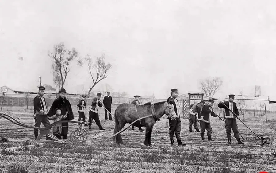 图里这片地头课程叫春耕实习,学生牵着小骡子拉犁,前面有人扶柄稳深浅,后面有人用耢压一遍,土坷垃被翻得松散,鞋底沾着泥,老师让他们记录墒情、播深和发芽率,听上去像农家常识,其实每一步都有量化表,种地也能做成科学,这会儿看不稀奇,那时候可新鲜得很。