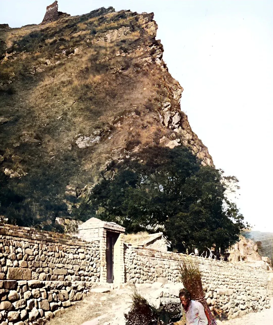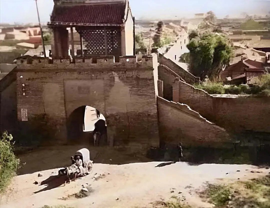 这处月城门脸不大,城墙上长着草,门洞旁的坡道是车马走的,城外一辆小车晃悠悠过来,车篷像顶小草帽,摄影师抓了个正着。