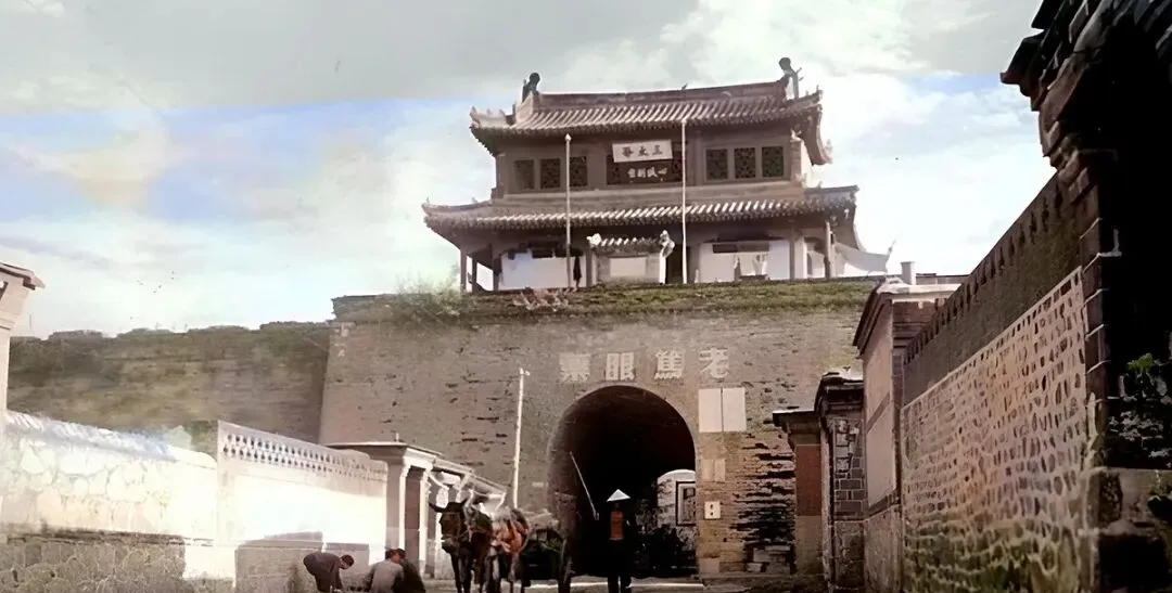 门额刻着南关大门,只有单孔券洞,门口站着卫兵,街里有挑夫蹲在树下喘气,城砖风干似的发白,以前守门靠人,现在守城靠摄像头。
