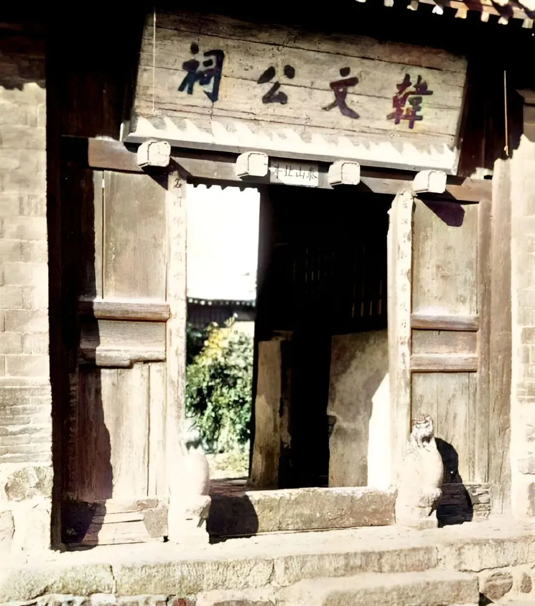 牌匾写着韩文公祠,木门发亮,门槛高高,石狮子蹲在台阶边上,后来拆过一回,八十年代又修了回来,奶奶说当年去烧香,门里门外都是书声。