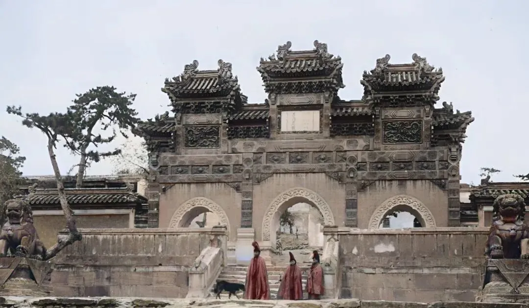 牌楼三间并立,石狮子镇在两侧,三个红衣僧从底下穿过去,檐下斗拱像层层叠叠的花,普陀宗乘之庙的大门气派得很,现在游客拍照都要退好几步。