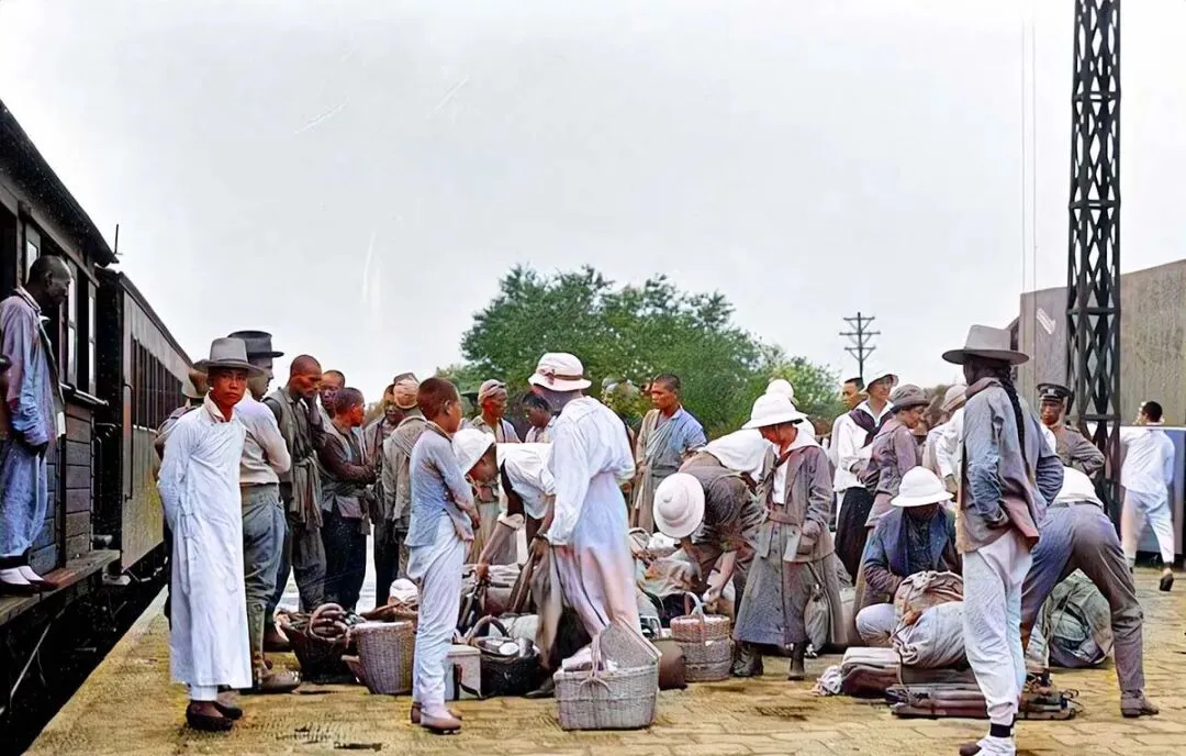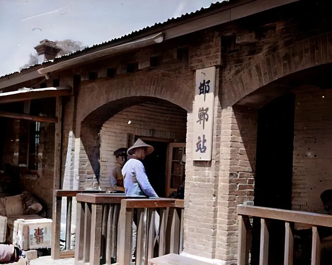 这面墙上挂着邯郸站三字,砖券拱成回廊,木栏杆擦得发亮,工作人员戴着尖顶草帽,站台不大,却把四面八方的人都聚了过来。