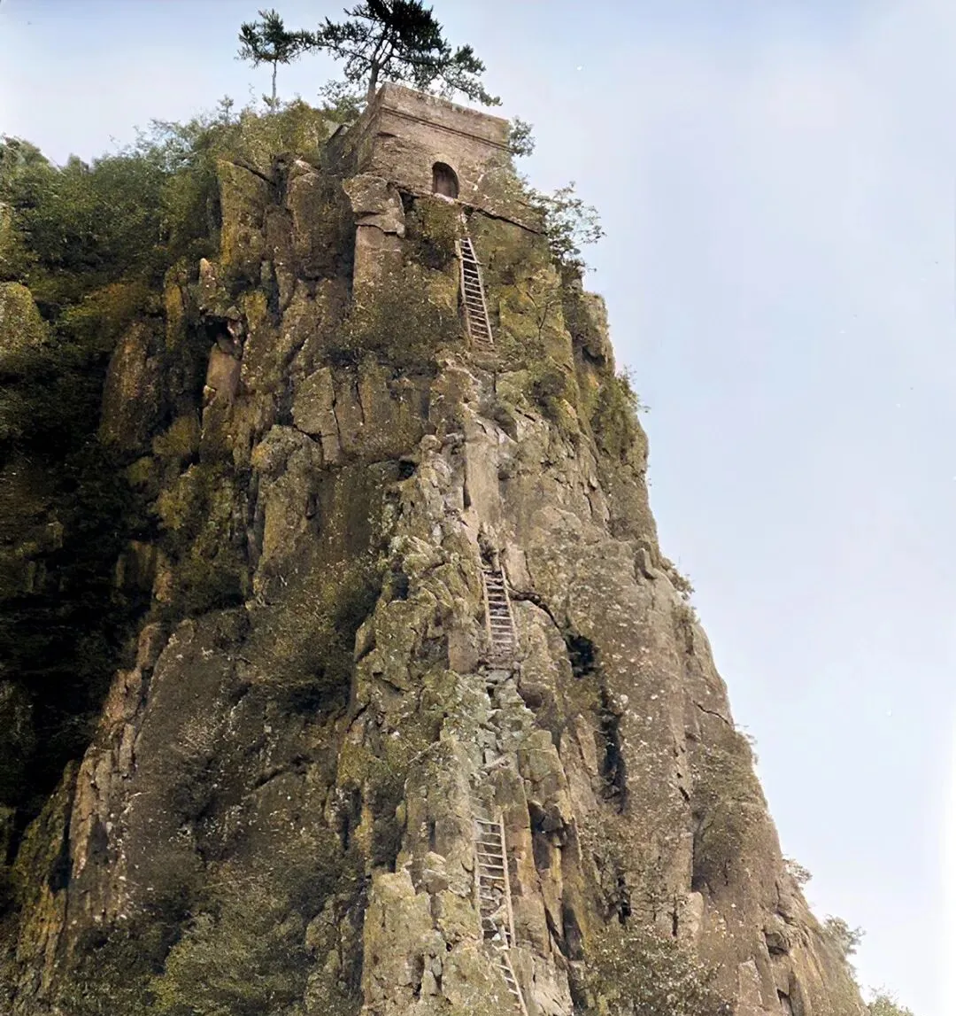 这座险得吓人的山叫背牛岭,木梯一截接一截钉在岩壁上,从脚下一直爬到烽火台门口,风一吹梯子都抖,早年香客就是这么上去的,现在修了步道,游客拍照还得排队。