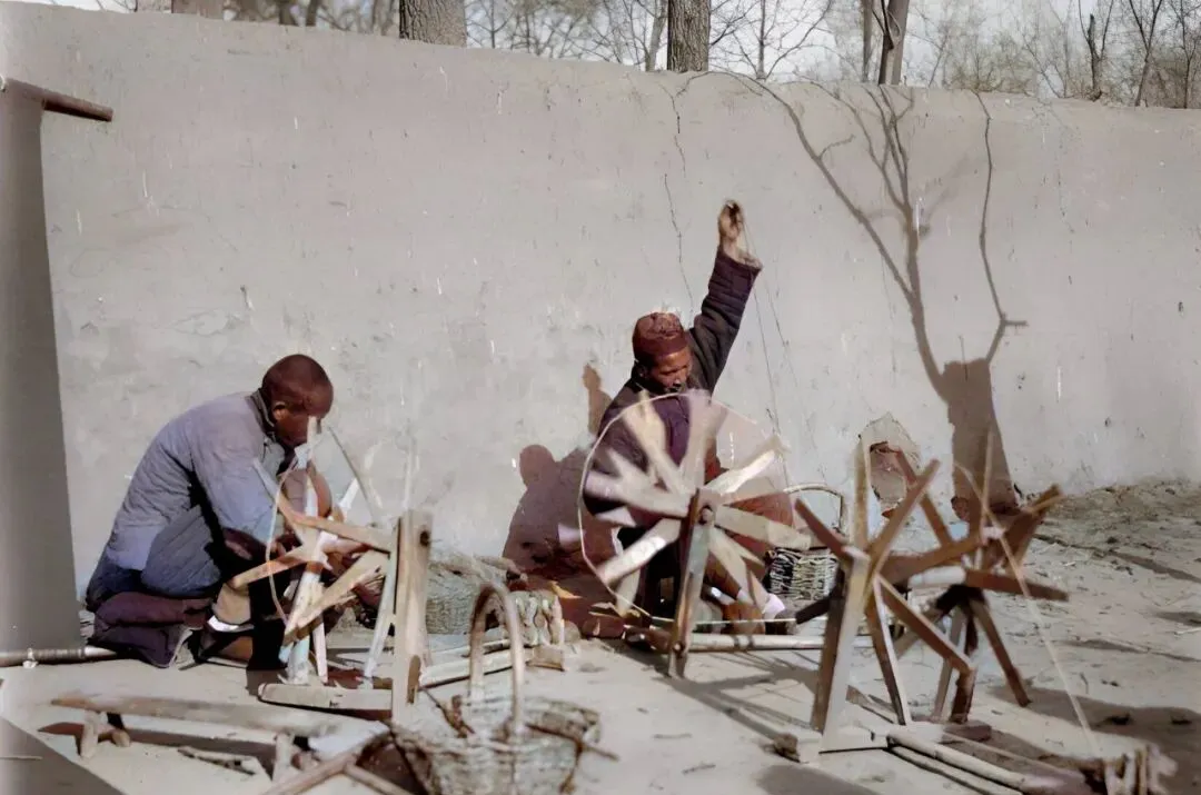 这张看着就踏实,两个汉子低着头拉线,木制纺车一圈圈转,指尖拽着麻丝,光在墙上画出影子,妈妈说以前过冬的棉裤,都是这么一点点备出来的。