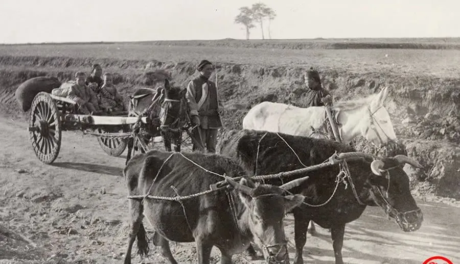 这个队形一看就是牛车驴车混拉,木轮子大到齐腰,辘辘碾在车辙里,车板上铺着毡子,女人抱着孩子坐上面,车把式嘴里衔着草棍,手里攥着缰绳,慢慢地催,路上粉尘起一层纱,以前出门全仗畜力,现在一脚油门就过县界了。