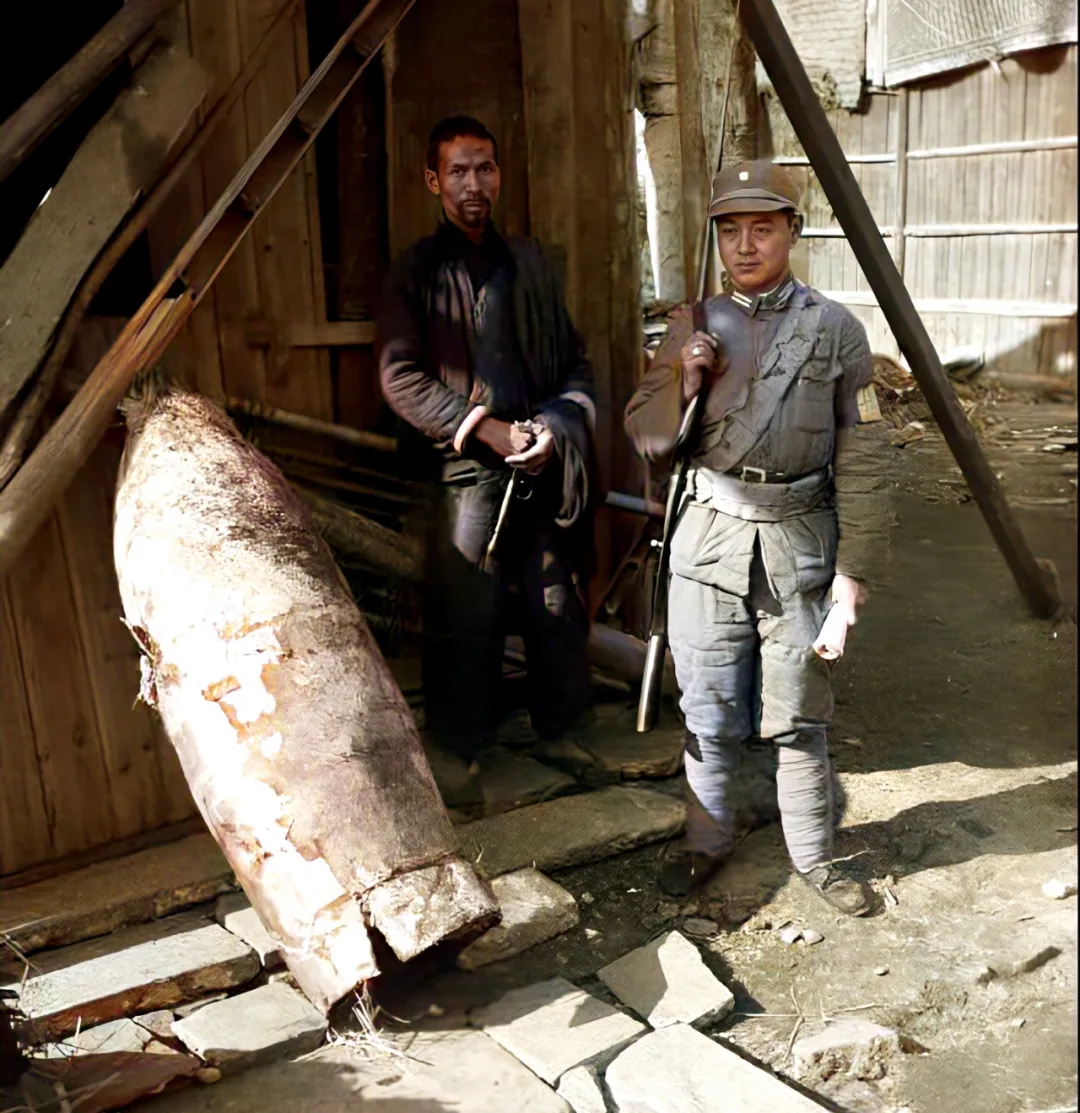 这个门口的老木屋叫夹皮墙民居,门框歪斜却结实,青灰瓦上搭了芦苇帘,风从缝里钻出来带点潮味儿,以前这里晾谷子切萝卜干,门前石板经年磨得亮,现在呢,炸弹横在脚边成了不速之客,生活被迫让了一大步,让到墙根去。