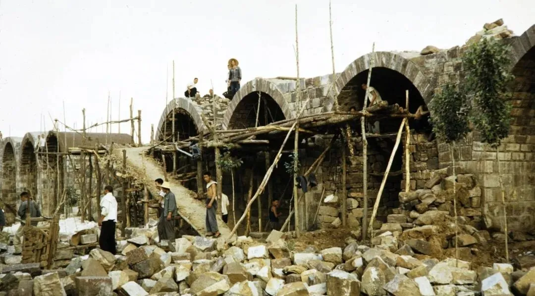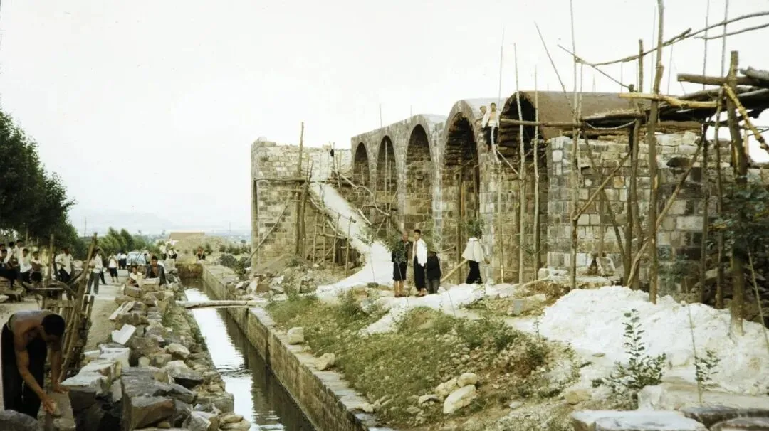 这一排半圆顶的叫拱涵,脚手架全是木杆子,绑上麻绳就能上人,泥瓦匠在顶上递石头,底下有人抹灰,有人垒缝,一会儿一声“来块正的”,一会儿“给点浆”,忙得像赶集,现在看着朴素,真用料,石头有分量,墙角摸上去都是毛刺感。