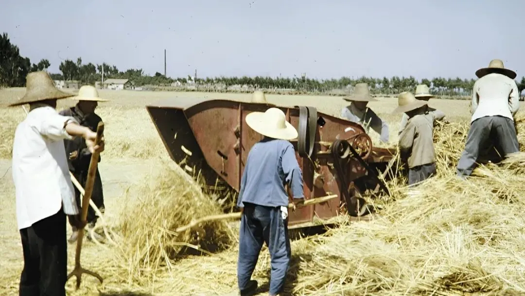 这台铁皮壳子的叫脱粒机,吱呀转带一响,麦秸叉进去,金黄的麦粒就哗啦啦落在布袋里,小孩在一边捡漏,耳朵被大人捂着说离远点,别让麦芒进了眼睛,现在收割机一过,场上连土都不扬了。