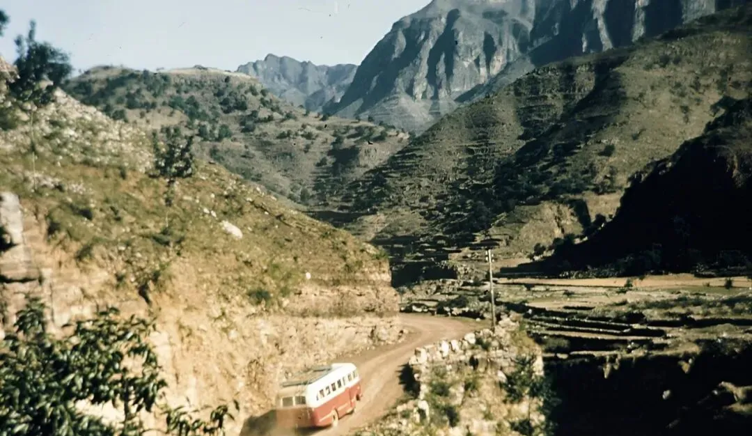 这辆涂着红白的长途车在盘山道上扭过去了,尘土在屁股后头翻花,车窗开一半,胳膊伸出来抖一抖,司机掐着点儿按喇叭,弯道处立根木杆当电线杆,瘦得像铅笔,路边梯田一层层,都是被渠水救活的地。