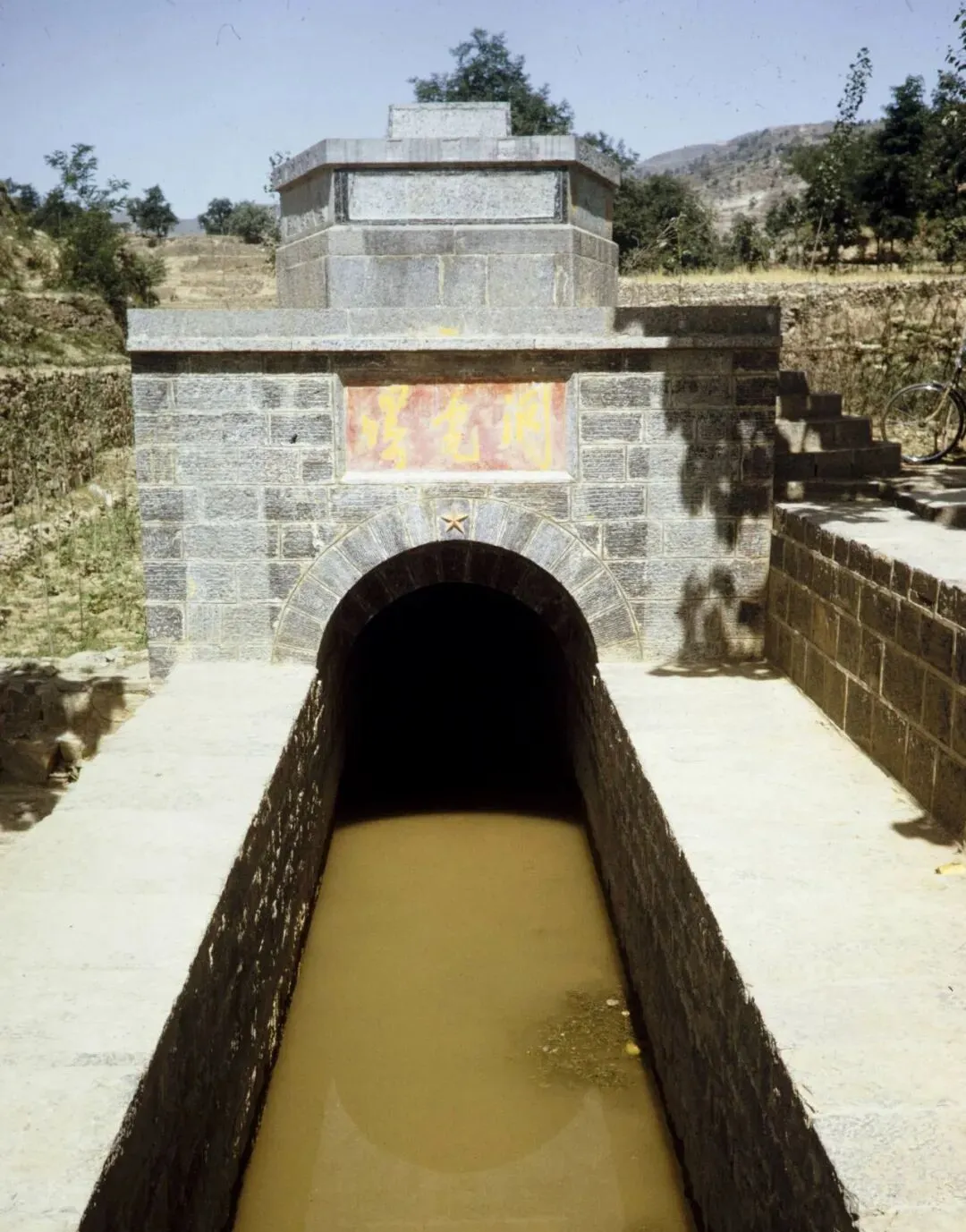 这个黑口子就是隧洞洞口,上方石匾褪了些色,泥水缓缓从渠里淌进去,阳光照进来一束金线,岸边靠着一辆老凤凰,铃铛一抖就清脆一下,谁家里都盼这水早到自个儿田里去。