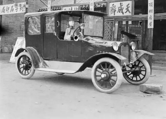 5.民国时期的北平,一辆1:1复原的纸汽车,上面还坐有纸做的司机。这是当时的丧葬用品,除此此外,还有纸船、纸房子。