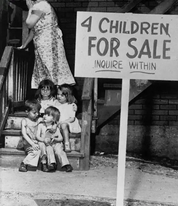 17.1948年,美国芝加哥。一名身无分文的母亲决意卖掉自己的四个孩子。她羞愧地捂着自己的脸。