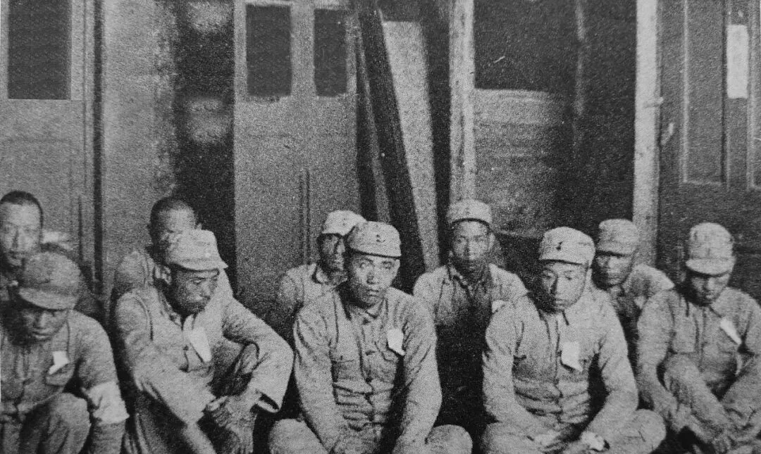 这排坐在地上的人,是我们的兵,衣领上别着写名字的布条,肩膀往里缩着,背靠着门框,眼神却直直看着前边,屋里光线很浅,像阴天的清早,地面粗糙,靴底打着补丁,安静得让人心慌。