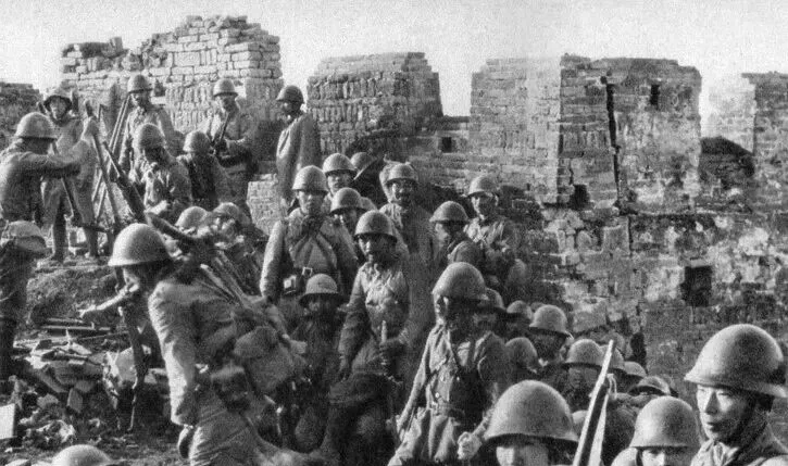 老照片:1938年日军进犯安徽蒙城,中国军队2000人血战6000日军,打出血性虽败犹荣。