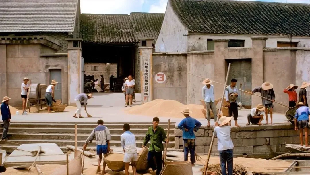 这个门口写着粮食管理所,地上堆着黄灿灿的谷子,船靠上来,大筐抬下去,人群一趟趟跑,扬起的尘土在阳光里发亮,那会儿交公粮算大事,日历上要画红圈。