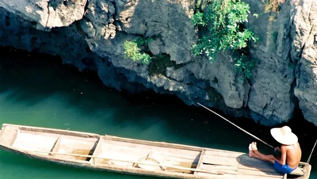 这个家伙用的就是竹竿,线不长,船边一坐半天,脚背晒得发红,岸壁青苔一片,钓不钓得到鱼不打紧,图的是清静,现在大家用碳素竿,轻是轻,味道差点。