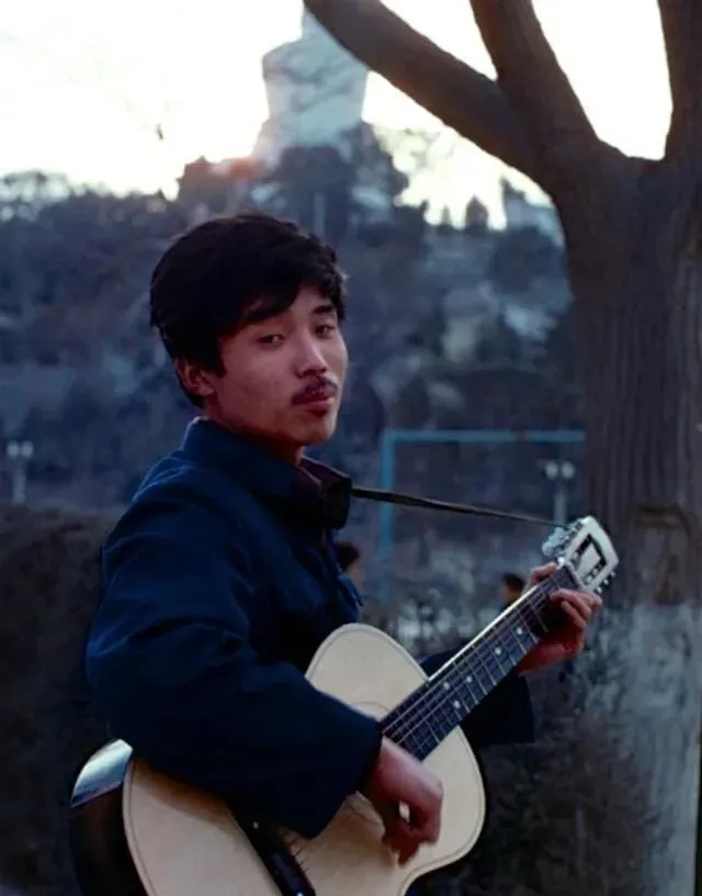 这个青年抱着木吉他,脸边的绒毛刮得不干净,眼神却很坚定,公园里晚风一吹,他就开口唱,朋友围过来,小声和,那代人的文艺,简单却直接。