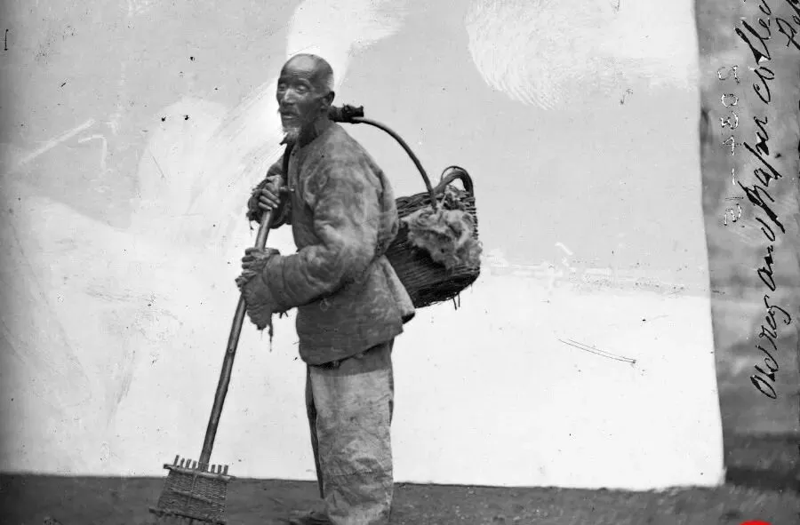 这位背着竹篮拿着竹耙的叫收字纸的,篮里是旧书皮和写过字的纸头,耙头短齿,扫不伤纸面,用来拨拉堆子,有讲究的人家把写过字的纸装好叫他拿去,送到敬字亭里烧掉,外公总爱嘀咕,字是个宝,不能踩,给钱不多,他收的是念头,以前怕糟践字,现在怕手机里字太多不看。
