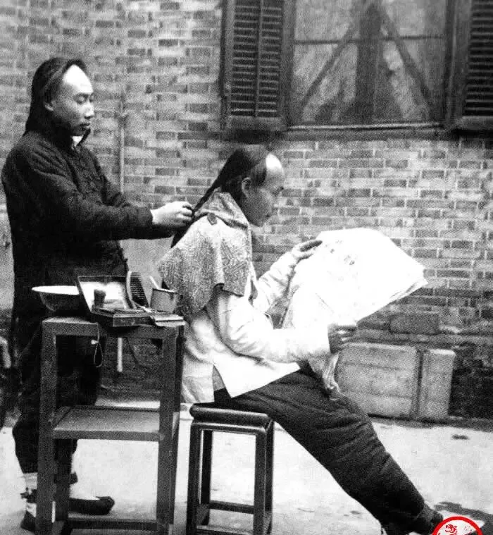 这个场景咱们直接说用法,剃头挑子一架,小炉子温着水,剃头刀、肥皂碗、鬃刷样样齐,客人坐小凳,手里摊着报纸,师傅先把辫子理顺,再推前额的发线,男人那时十天半月才洗一次头,辫子捂久了自然发臭,我外曾祖就数落过,夏天一挪脖子自己都嫌,师傅动刀轻快,刷子一抹一刮,额角露亮光,收尾再给辫梢抹点油,抖抖帕子,人起身就算清爽了。