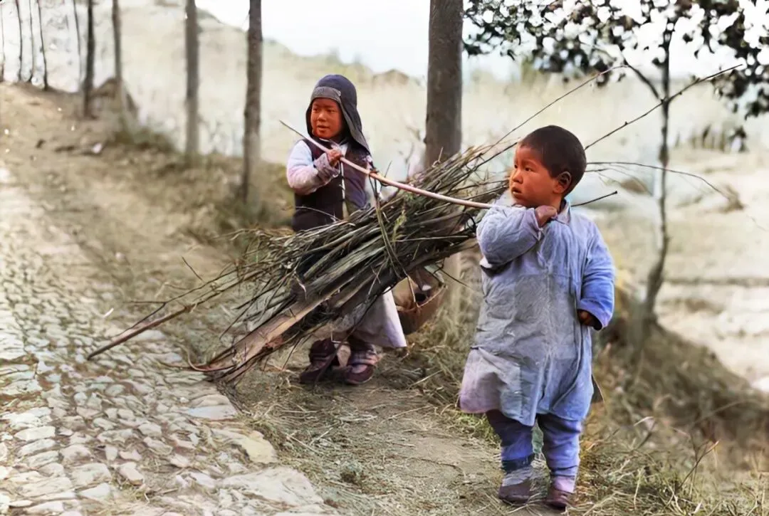 这三张照片里的孩子,一个坐在冷地上攥着石头,一个把手缩进手笼子跟着绳子走,一个用小肩膀挑着一捆柴,他们的童年没有玩具的光亮,只有生活的重量,以前日子苦,苦里也有股子韧劲,现在条件好了,别让那股劲儿丢了,家里要是还留着旧手笼子旧扁担,别急着扔,拿出来给孩子看看,告诉他那时候怎么过冬,怎么生火,怎么走路不哭,讲完把它们收好放回柜子里,留一段能摸得着的记忆在家里。