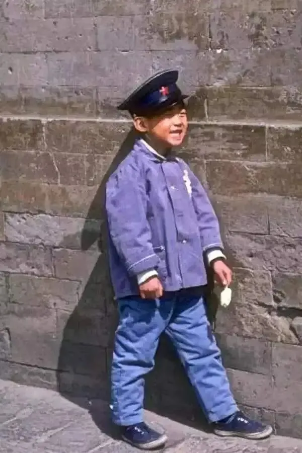 3张儿童老照片:全副武装的少年,会是警卫员吗?脖子上挂铜锁的孩子