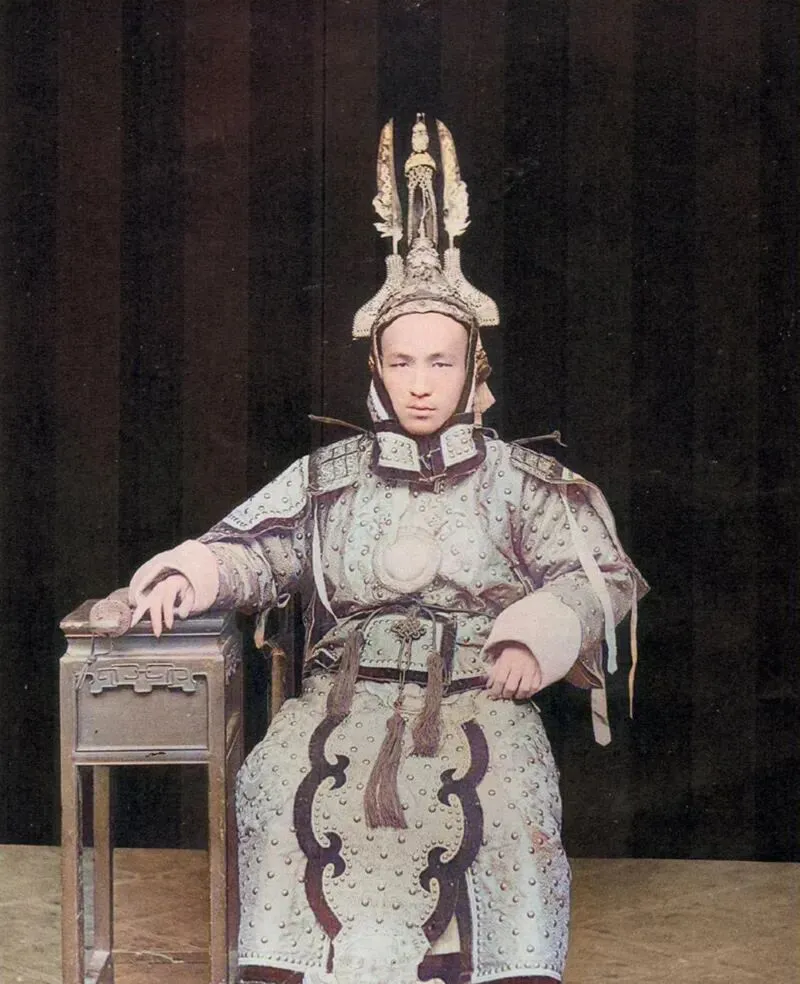 图中这身家伙叫甲胄,盔顶挑着翎尾,胸口一块圆护心镜亮得扎眼,肩甲用绳穗连着,整套穿齐得有人帮忙系扣,摆出来气派是有的,可一想到那年头子弹呼啸,心里就打鼓,外公说以前冷兵器拼的是膂力和胆气,现在热兵器一响,硬壳再厚也挡不住,甲胄慢慢变成舞台上的衣裳了。