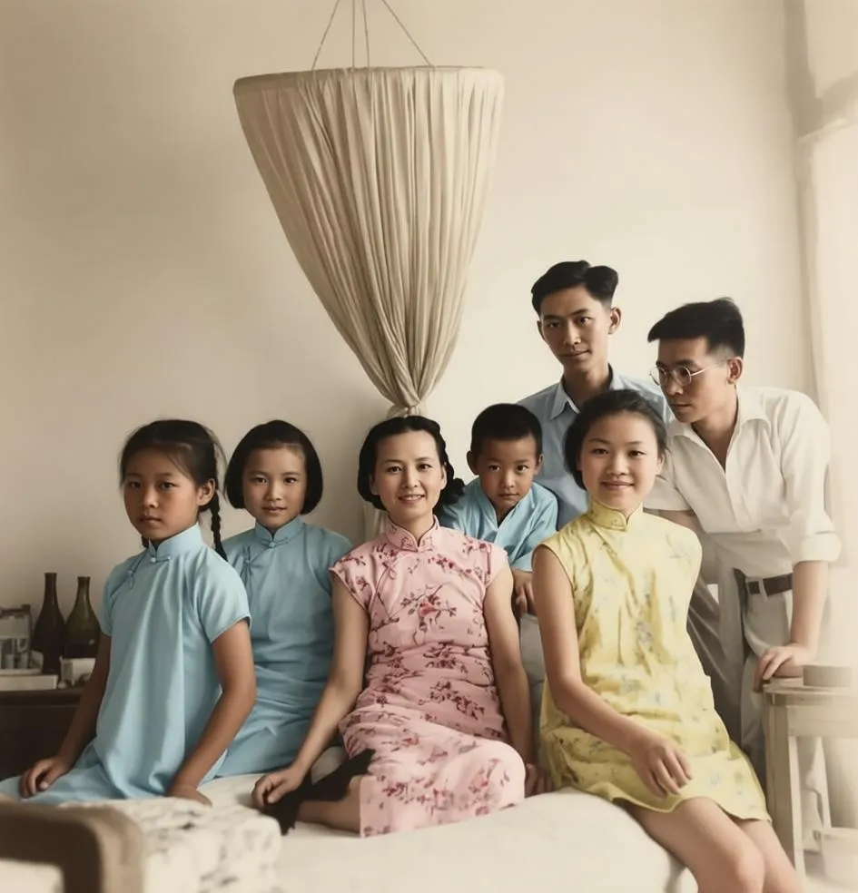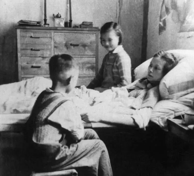 11岁的女儿梁再冰(小名“冰冰”)端坐在床沿,双手轻轻搭在母亲盖着的薄被上;7岁的儿子梁从诫(小名“从从”)则侧坐在小板凳上,仰头望着妈妈,眼神里满是心疼与依赖。这张照片是梁思成用莱卡相机按下快门时留下的唯一一张全家福——没有父亲,只有母亲与儿女。
