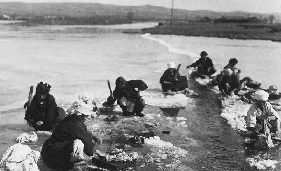 这条狭长的水口是凿开的冰窟,女人们蹲成一排,木拍子一抡,冰碴子噼里啪啦往外溅,手伸进去一下就通红,奶奶说那时候洗完衣裳,手指头都不听使唤。